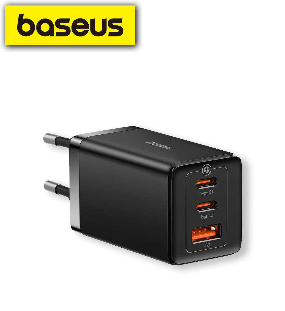 • מטען קיר מהיר Baseus Fast Charger 2C+U 65W (עם כבל C אל C 100W)