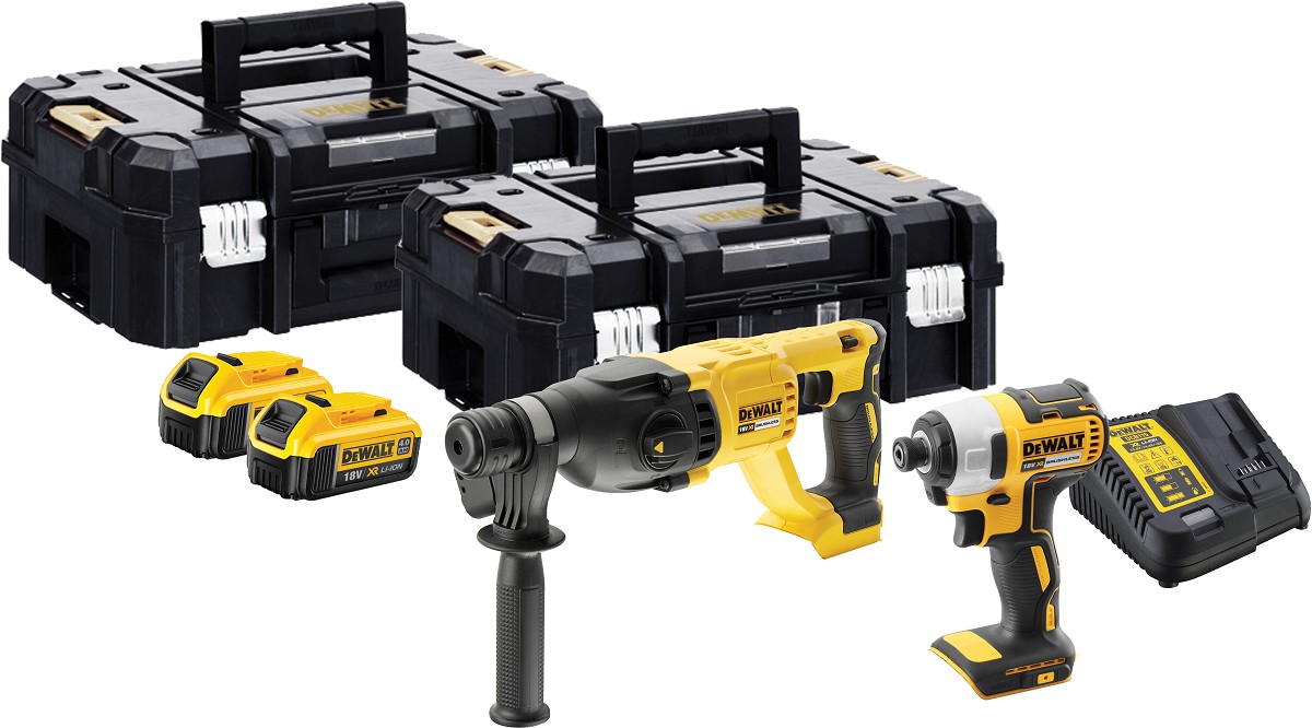 הסט כולל:2 סוללות ליתיום 4.0Ah מסדרת XR ומטעןמברגת אימפקט נטענת 18V מדגם DCF787פטישון נטען 18V מדגם DCH1332 ארגזי TSTAK קשיחים מדגם D17807
