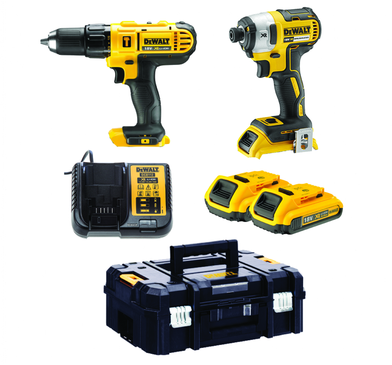 סט נטען 18V בראשלס מקצועי מברגת אימפקט + מקדחה/מקדחה רוטטת + 2 סוללות 2 אמפר DeWALT DCK266P2 דיוולט