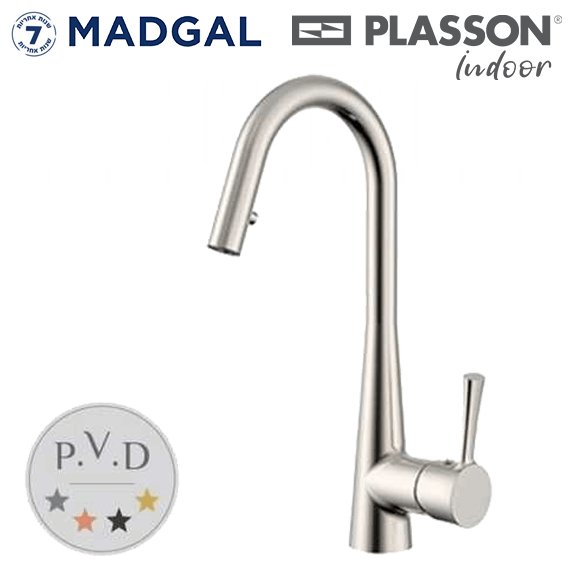 ברז נשלף לכיור מטבח, פיה פולדאון PULL DOWN, בראש ניקל, 44818, סדרת יערה, מדגל MADGAL