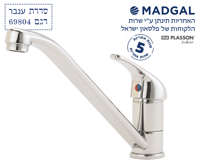 ברז בעמידה לכיור מטבח, פיה ארוכה מסתובבת, כרום ניקל, 69804, סדרת ענבר, מדגל MADGAL