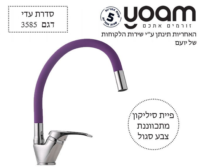 ברז לכיור מטבח | ברבור פיה סיליקון סגולה גמישה | גוף כרום ניקל | 3585 | סדרת עדי | יועם YOAM