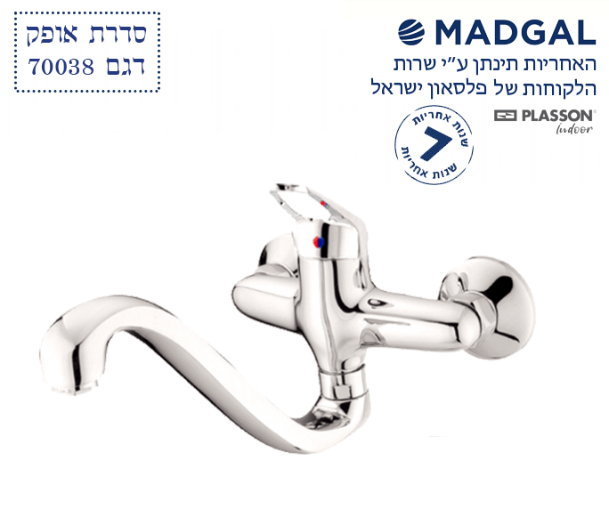 ברז מהקיר סוללה לכיור מטבח, פיה תחתונה גבוהה ארוכה, כרום ניקל, 70038, סדרת אופק, מדגל MADGAL