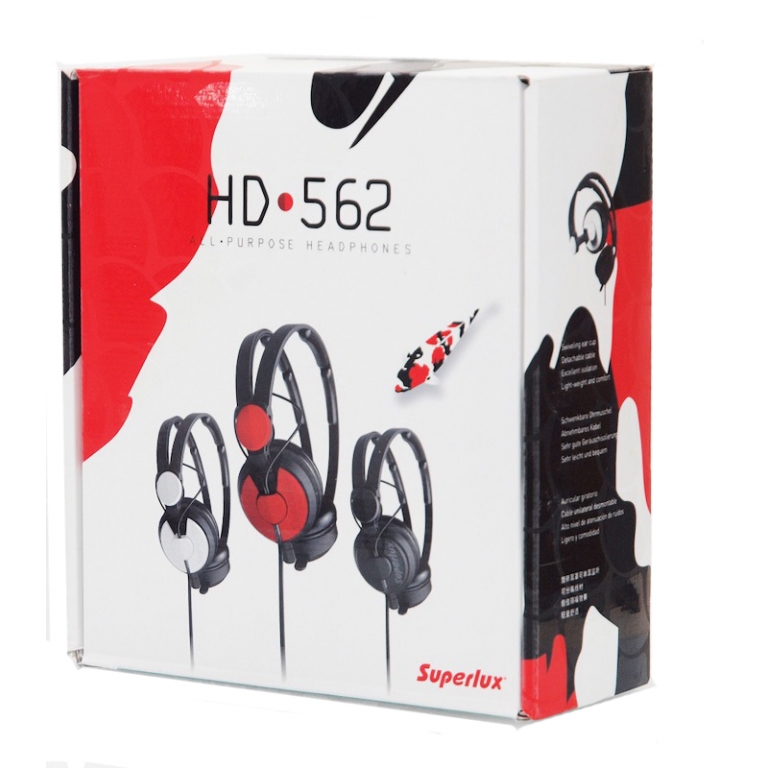 אוזניות סגורות HD562 מבית SuperLux ה-HD562 הן אוזניות מקצועיות סגורות המתאימות למגוון שימושים כגון: האזנה למוזיקה במחשב או דרך מכשיר MP3, לחיבור כלי נגינה ( כמו פסנתרים חשמליים, תופים אלקטרוניים וכו’) לאמני DJ, לצפייה בסרטונים ולהקלטות באולפן.