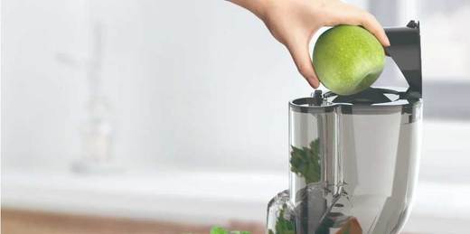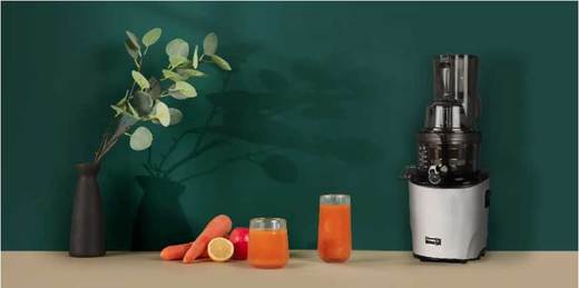 מתאים לצורות וגדלים שונים של פירות וירקות מסחטת המיצים האיטית הראשונה בעולם עם פתח רחב במיוחד.