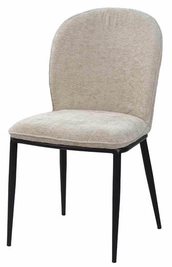 כיסא מעוצב מרופד בבד איכותי בצבע קרם, לכסא רגלי ברזל בצבע שחור.מיועד לפינת אוכל, למסעדות, בתי קפה ועוד. כסא אוכל חזק מאוד ואמין, קל משקל לנוחות מושלמת.