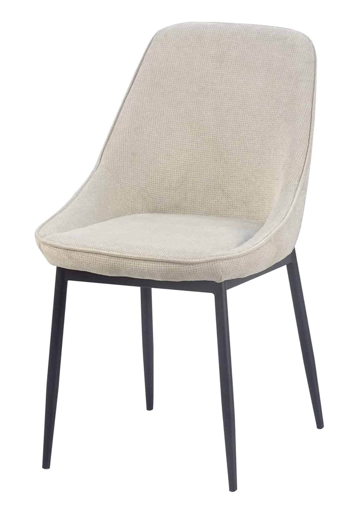 כיסא מעוצב מרופד בבד איכותי בצבע קרם, לכסא רגלי ברזל בצבע שחור.מיועד לפינת אוכל, למסעדות, בתי קפה ועוד. כסא אוכל חזק מאוד ואמין, קל משקל לנוחות מושלמת.