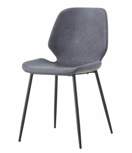 כיסא מעוצב מרופד בדמוי עור איכותי בצבע אפור כהה, לכסא רגלי ברזל בצבע שחור.מיועד לפינת אוכל, למסעדות, בתי קפה ועוד. כסא אוכל חזק מאוד ואמין, קל משקל לנוחות מושלמת.