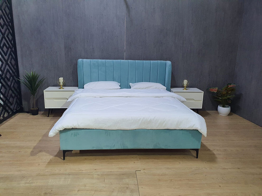 המיטה מרופדת בבד קטיפתי דוחה כתמים ומאוד נעים למגע. המיטה מוגבהת מהריצפה על ידי רגלי מתכת מעוצבות וחזקות במיוחד.