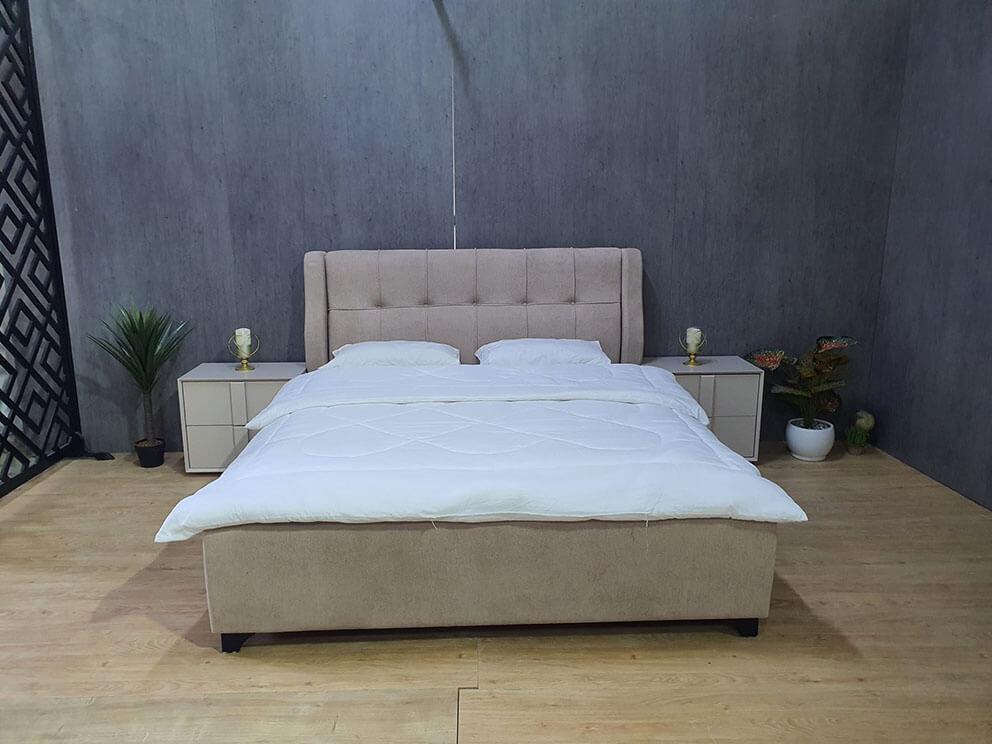 מיטה זוגית מרופדת בעיצוב עדכני וחדשני, בעלת ראש מיטה מרופד. עבודת רפדות מקצועית ורמת גימור מושלמת.