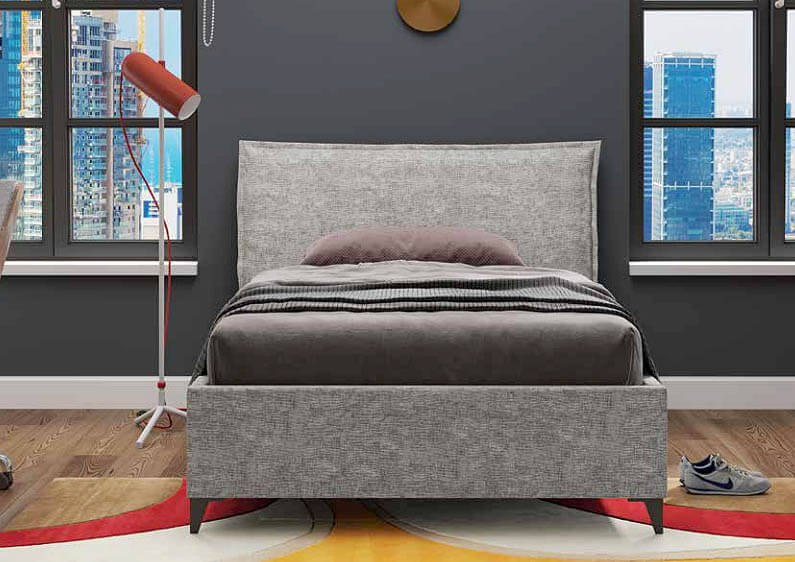 מיטה ברוחב וחצי מרופדת ומעוצבת עם ראש מיטה. המיטה עשויה MDF מלא ועבה (Multi Density Fireboard)
