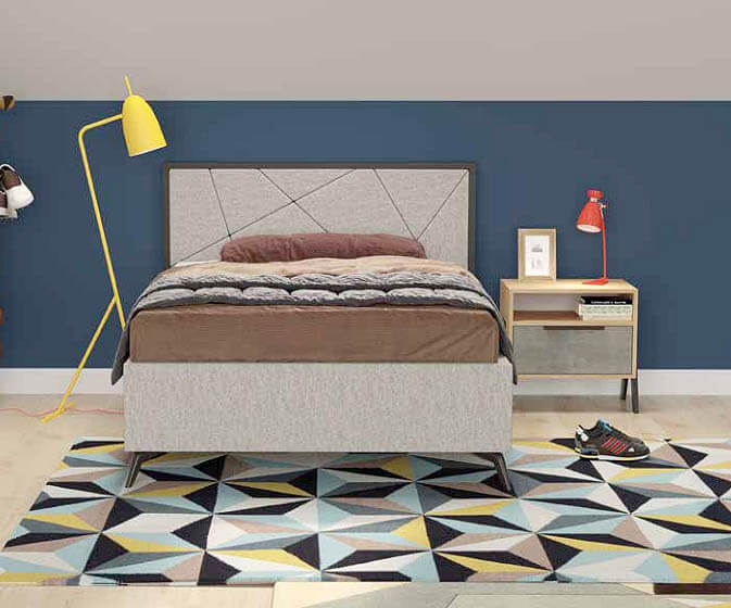 מיטה ברוחב וחצי מרופדת ומעוצבת עם ראש מיטה. המיטה עשויה MDF מלא ועבה (Multi Density Fireboard)
