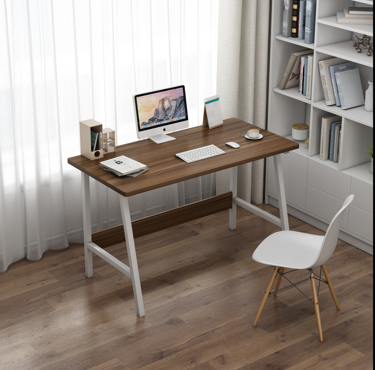 שולחן מחשב דקורטיבי בצבע אלון כהה עם רגליים לבנות בעיצוב טרפז ייחודי ליציבות יוצאת דופן!