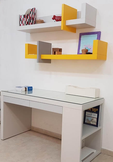 המחיר נכון לשולחן כתיבה בלבד ללא מדפים תלויים, פלטת זכוכית ואביזרים נילווים.