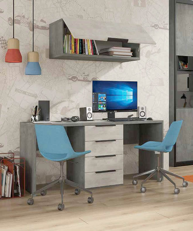 שולחן כתיבה כפול במראה צעיר, עם 4 מגירות לאיחסון.