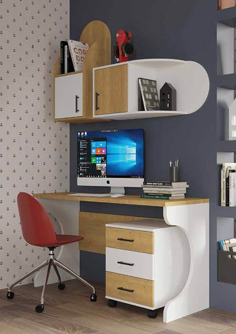 שולחן כתיבה מעוצב במראה צעיר, עם שידה 3 מגירות על גלגלים לאיחסון.