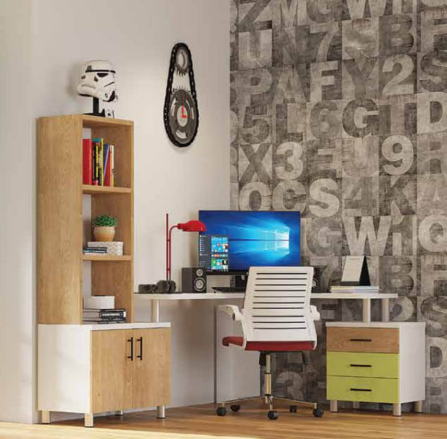 שולחן כתיבה פינתי עם כוננית 3 תאים + שידת 3 מגירות + מזנון 2 דלתות לאיחסון דגם GR-180 בעיצוב צעיר, מיוצר ברמת גימור גבוהה במיוחד.