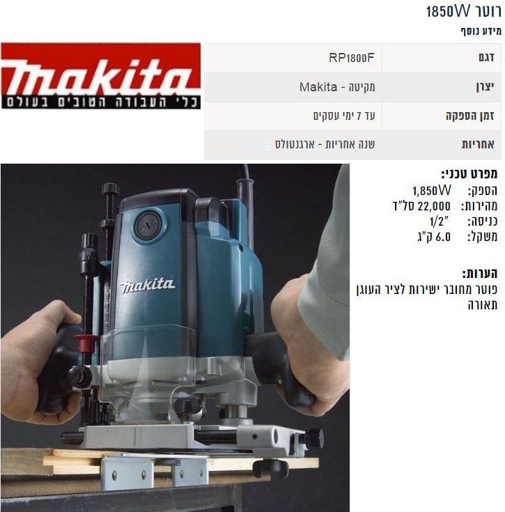 רוטר 1850W דגם RP1800F מבית MAKITA + כפפות עבודה עם בלימת זעזועים XL מבית SIGNET + מלטשת אקצנטרית GEX 34-150 מבית BOSCH + מקצוע שולחני 1650W דגם 2012NB מבית MAKITA + מטר מדידה 5 מטר דו צדדי מגנטי Milwaukee 4932464599 +  מסור ‏חרב Milwaukee SSD 1100 X =