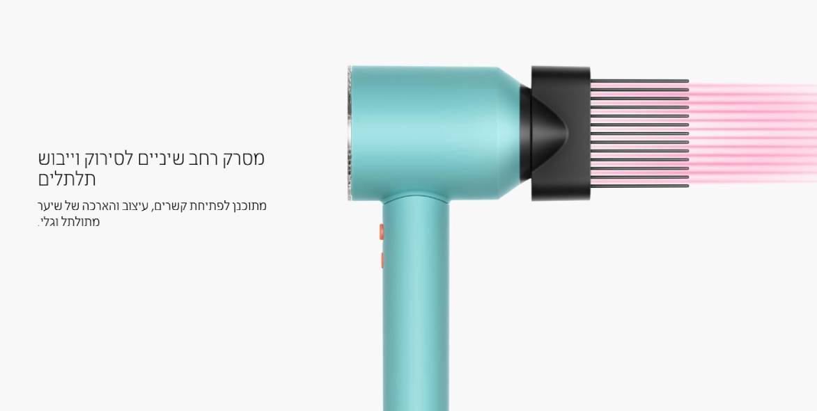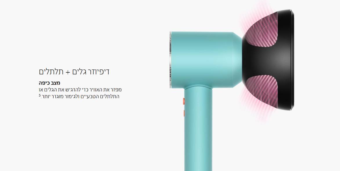 האוויר נשאב לכיפה ומוכנס דרך השיער להדגשת הגלים והתלתלים הטבעיים ולגימור מוגדר יותר.