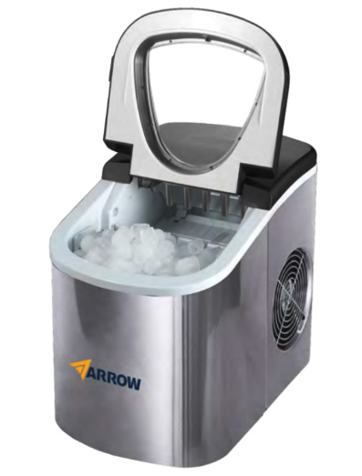 מכונת קרח ביתית ניידת מבית ARROW מספקת פתרון מהיר ונוח לייצור קרח לכל צורך – משקאות, אירוח, קמפינג ושימוש יומיומי. בעלת מבנה נירוסטה יוקרתי, פעולה שקטה ויעילה, וקיבולת סלסילת קרח של 0.7 ק"ג עם מיכל מים בנפח 2.2 ליטר.