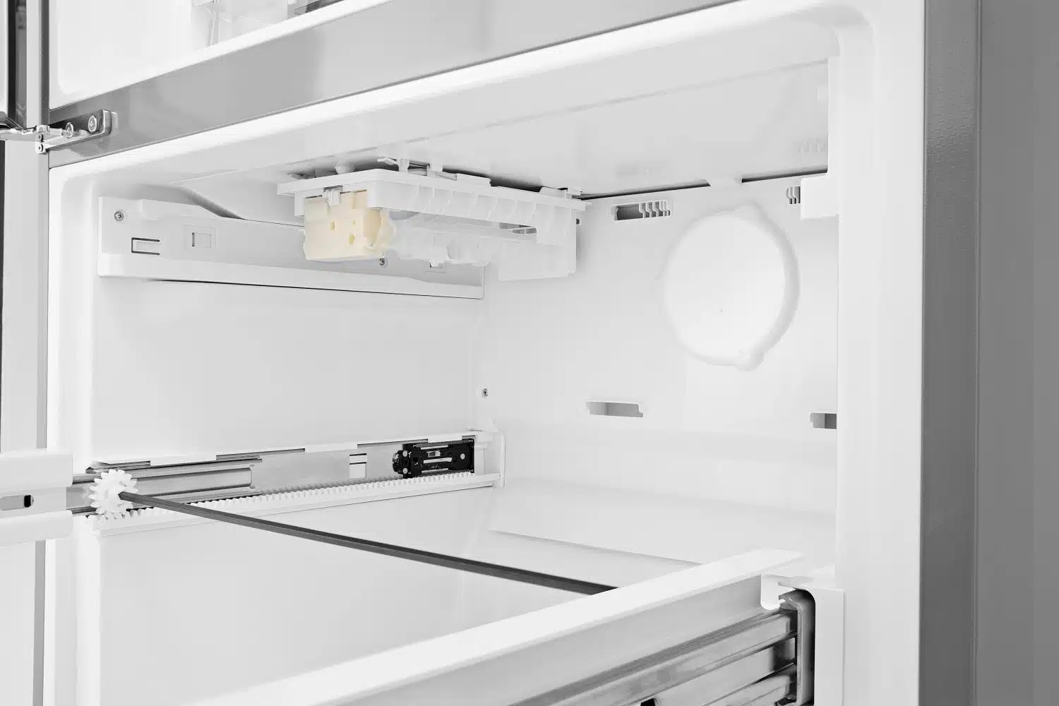 יצרן קרח אוטומטי במגירת המקפיא בעל חיבור ישיר לרשת המים, דואג לאספקת קרח רציפה ללא מגע ידי אדם.