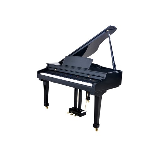 צבוע בצבע שחור עם גימור הובנה (Ebony) וכולל גם כיסא פסנתר נח ואלגנטי