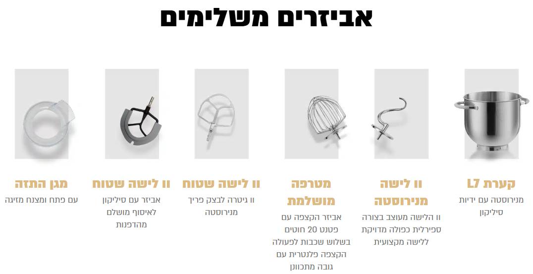 מיקסר חזק, יציב ועוצמתי בעל מנוע DC בהספק של 1800W המיקסר מיועד לבצקי לחמים, עוגות והקצפות