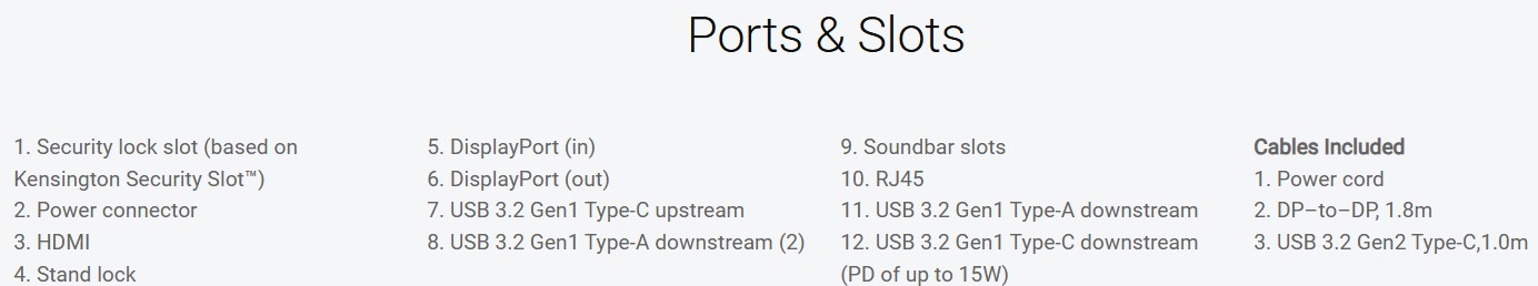 חיבורים HDMI 1.4, DP 1.4, DP-Out, RJ45, USB-C (90W), 3×USB-A HDMI 1.4, DP 1.2, VGA, USB-B, 3×USB-A