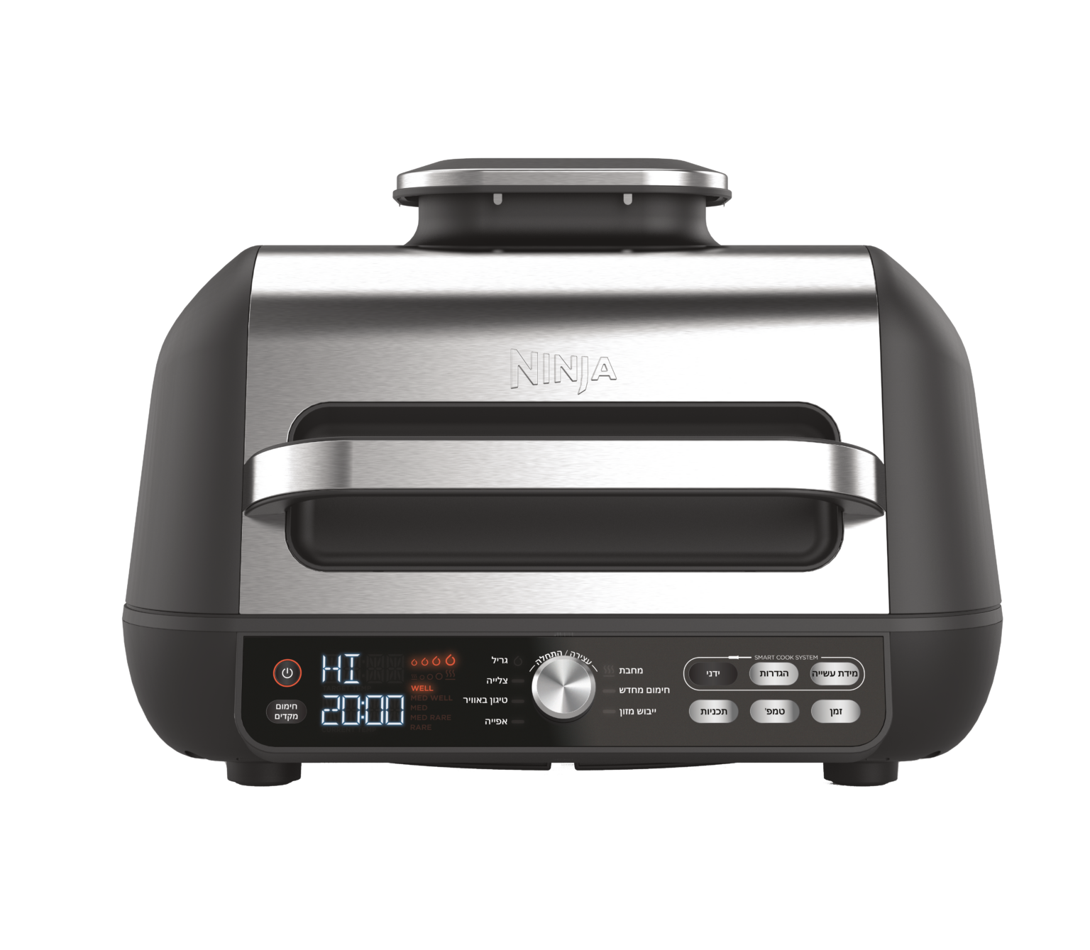 נינג’ה גריל MAX PRO ׀ “על האש” בתוך הבית, בלי כל העשן מסביב. מערכת בישול חכמה שצולה, אופה ומטגנת בלי ניחושים ולתוצאות מדויקות עם פאנל תצוגה בעברית (בלעדי) חדש! קחו את יכולות הגריל שלכם לרמה חדשה עם אפשרות לצלייה גם עם מכסה פתוח ועם פלטה שטוחה לצריבה והקפצה.