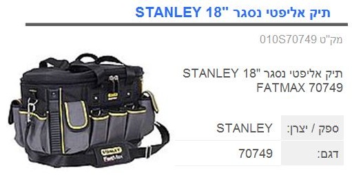 עיצוב רוכסן עם פתיחה רחבה לגישה מהירה ונוחה לכלי עבודה ידניים, כלי עבודה חשמליים קטנים וחלקים.כיסים פנימיים וחיצוניים מרובים: לארגון כלים קטנים או חפצים אישיים.בסיס עמיד למים קשיח: מגן על תכולת השקית מלכלוך ולחות. תיק הכלים STANLEY® FATMAX® 18 אינץ’ בעל עיצוב רוכסן רחב לגישה מהירה ונוחה לכלי עבודה ידניים, כלי עבודה חשמליים קטנים וחלקים. התיק כולל כיסים פנימיים וחיצוניים מרובים לארגון כלים קטנים או חפצים אישיים. בסיס קשיח עמיד למים מגן על תכולת התיק מפני לכלוך ולחות. שלם עם רצועת כתף מתכווננת וידית נשיאה עם אחיזה רכה לנוחות וקלות תחבורה. עשוי מבד כבד 600 דנייר לעמידות לאורך זמן.