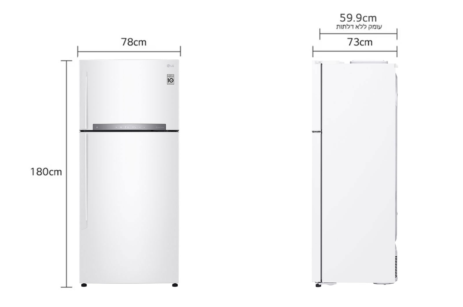 גובה: 180.5 ס"מ, עומק: 73 ס"מ, רוחב: 78 ס"מ