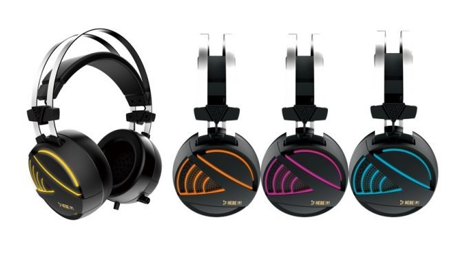 אוזניות HEBE E1 עם כיסוי אוזן מלא(Full Cup), אלמנט 40 מ"מ, תאורת לד RGB, מיקרופון Omnidirectional, בקר מרחוק מובנה, כבל 2מ’.