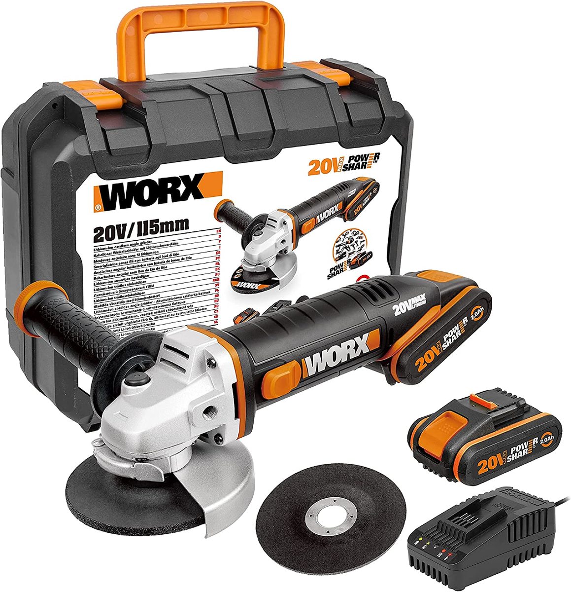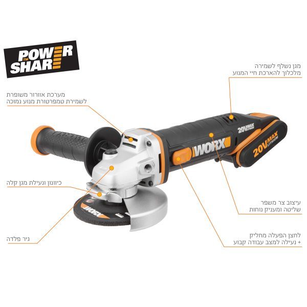 משחזת זווית נטענת 20V 4.5 עם 2 סוללות WORX