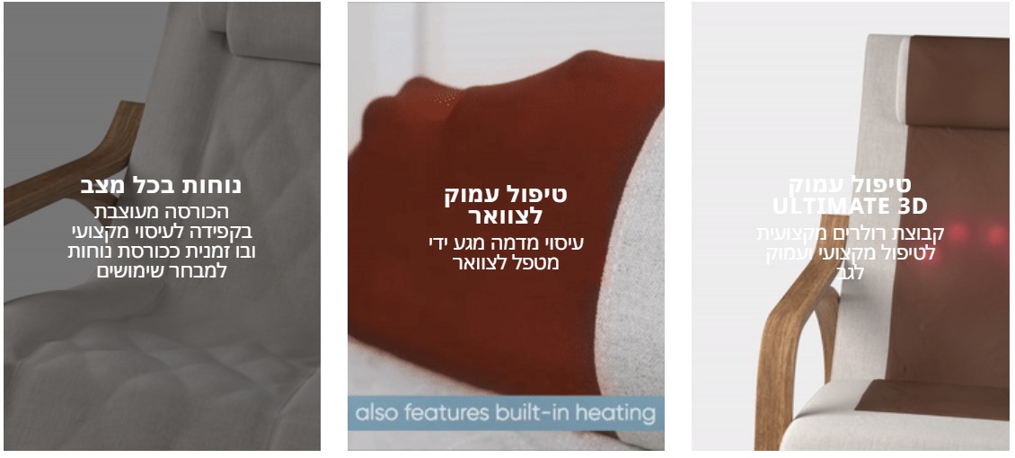 10 פונקציות ייחודיות: כולל טיפול עמוק ULTIMATE 3D וחימום INFRARED לטיפול בכאבים.