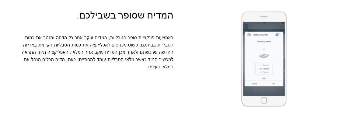 פשוט מכניסים לאפליקציה את כמות הטבליות הקיימת באריזה החדשה שרכשתם ולאחר מכן המדיח עוקב אחר המלאי.