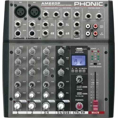 - AM220P מיקסר קומפקטי עם נגן USB של PHONIC