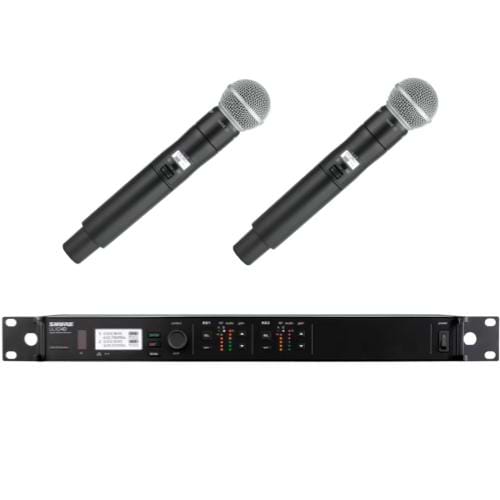 - ULXD24DE/SM58-Z18 מקלט כפול + שני משדרים ידניים עם ראש מיקרופון SM58 של Shure