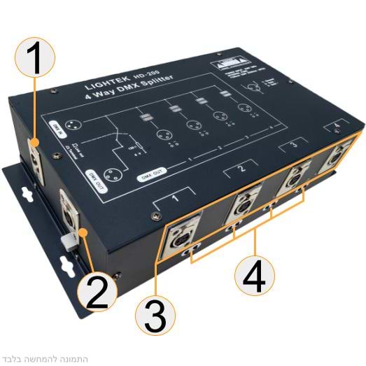 - HD-200 מפצל DMX מקצועי עם 4 יציאות XLR שלושה פין של LIGHTEK