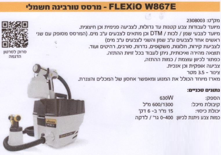 מרסס טורבינה חשמלי W867E מבית WAGNER