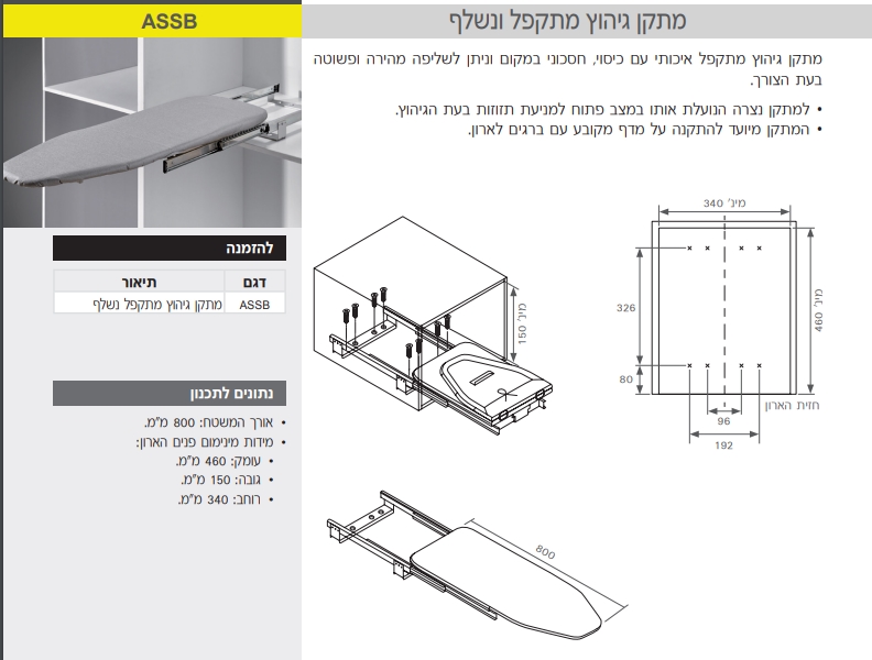 - מינ' 460 המתקן מיועד להתקנה על מדף מקובע עם ברגים לארון.