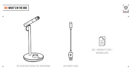 מיקרופון דגם Quantum Stream Talk מבית JBL. עם דפוס לאיסוף צליל קרדיואידי ועיצוב אלגנטי ופונקציונלי הופך את המיקרופון למושלם עבור קול בודד, ומבטיח שכל רעשים אקראיים במקומות אחרים בחדר לא יישמעו.