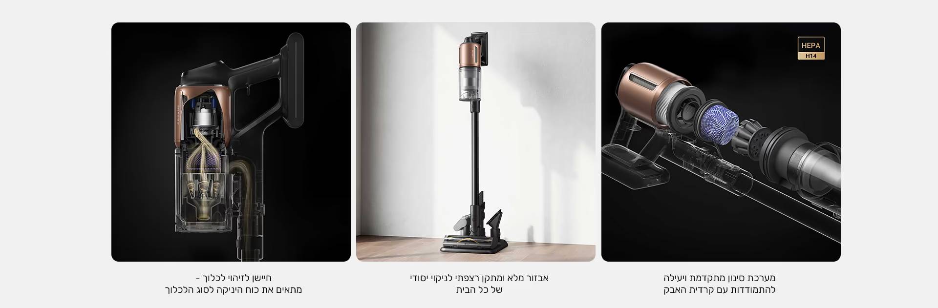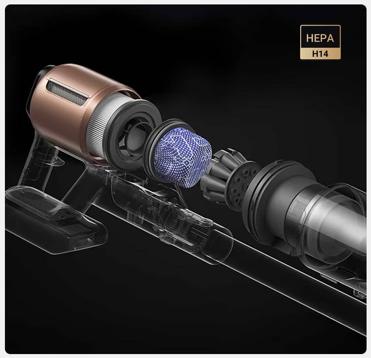 לשואב האלחוטי יש מערכת סינון עם פילטר מתקדם HEPA – הלוכדת עד 99.9% מאבק וחלקיקים זעירים עד 0.3 מיקרון.