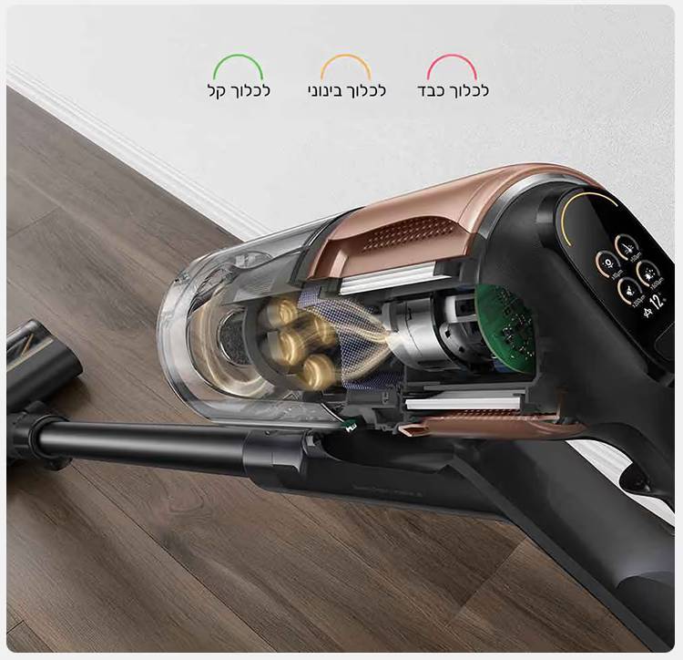 לשואב האבק העוצמתי יש 3 רמות שונות של עוצמת יניקה: