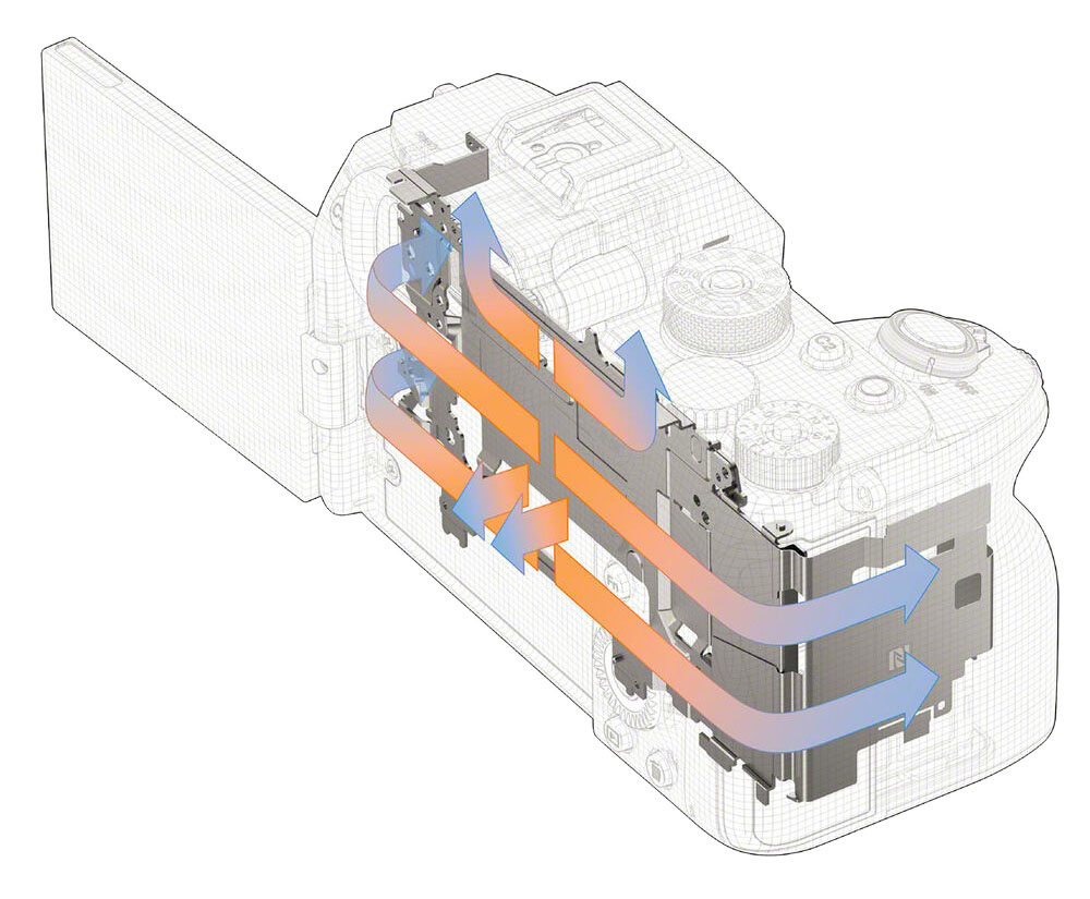 ממבחנים ראשונים נראה שהמצלמה לא מבודדת היטב, כנראה כדי לאפשר לחום לצאת, ותהיה עמידה פחות לתנאים חיצוניים (אך תתקרר מהר יחסית). זה מבוסס כמובן על סקירות ראשוניות מאד, ויש גם סקירות שמראות שאין שו בעיה אז לקחת בעירבון מוגבל. בכל אופן- השימוש בצלע קירור מוכר לנו מכמה מצלמות של פנסוניק, ושם העסק עובד. אפשר לקוות לשיפור משמעותי גם בסוני, עם השימוש בטכנולוגיה. אם לסכם- השינויים הארגונומיים אולי לא ניכרים במבט ראשון, אך הם מביאים את המצלמה לסטנדרט וידאו מקצועי, לראשונה במצלמות האלפא בתחום הוידאו.