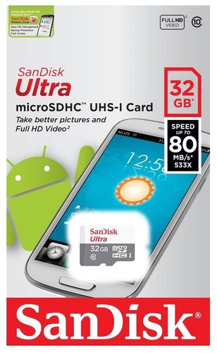כרטיס זיכרון סנדיסק SanDisk ULTRA 32GB micro SD