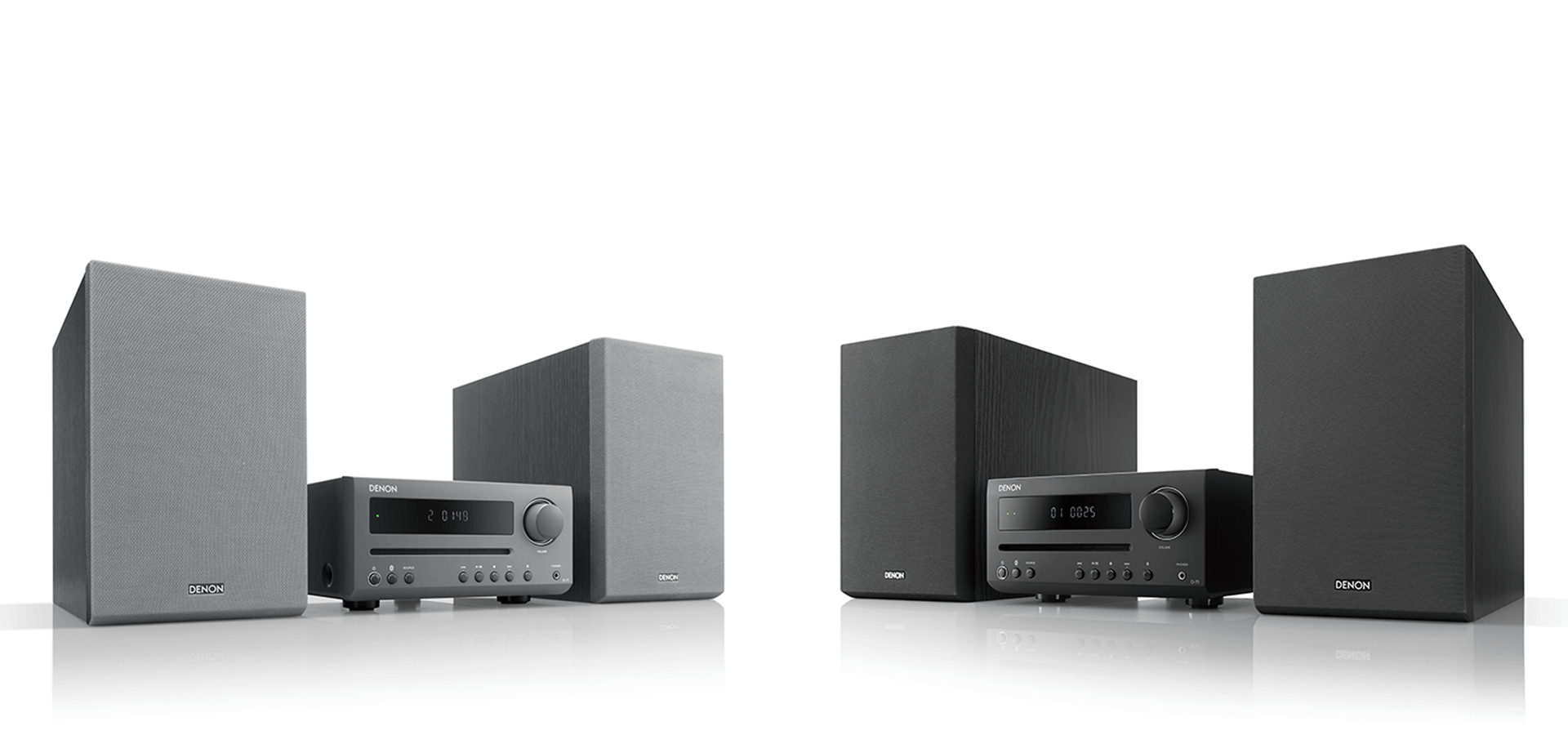 2-way speakers with 12cm woofer and 2.5cm soft dome tweeters — enjoy the renowned Denon Hi-Fi audio stage