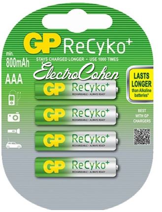 4 סוללות נטענות GP AAA ReCyko 850mAh