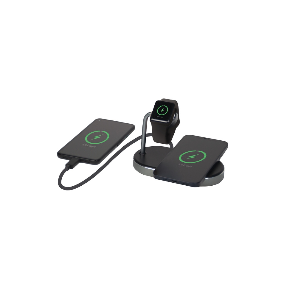 יצרן: Verbatim, סוג מוצר: משטח טעינה, תואם ל-Apple Watch: כן, מקסימום הספק: 44W, הספק טעינה עבור Apple Watch: 5W, הספק טעינה אלחוטית: עד 15W, הספק טעינה מהירה USB-A: 24W, קלט חשמל: 15V/3A, מידות: 140mm (אורך) x 76mm (רוחב) x 102mm (גובה), אורך כבל: 1.5m, משקל: 189g, הגנה מפני זרם יתר: כן, הגנה מפני מתח יתר: כן, זיהוי אוטומטי של נוכחות והסרה של אובייקטים: כן, זיהוי אובייקטים זרים: כן