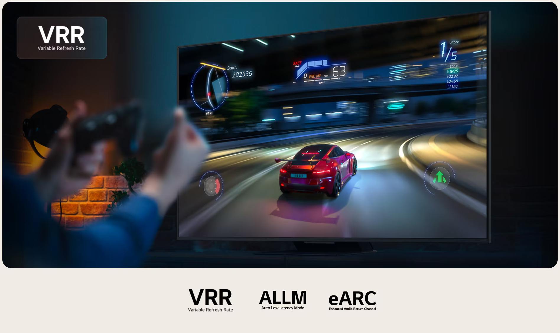 ALLM (Auto Low Latency Mode) מזהה גיימינג באופן אוטומטי ומחיל זמן השהייה נמוך – אין צורך לעבור באופן ידני למצב משחק.
