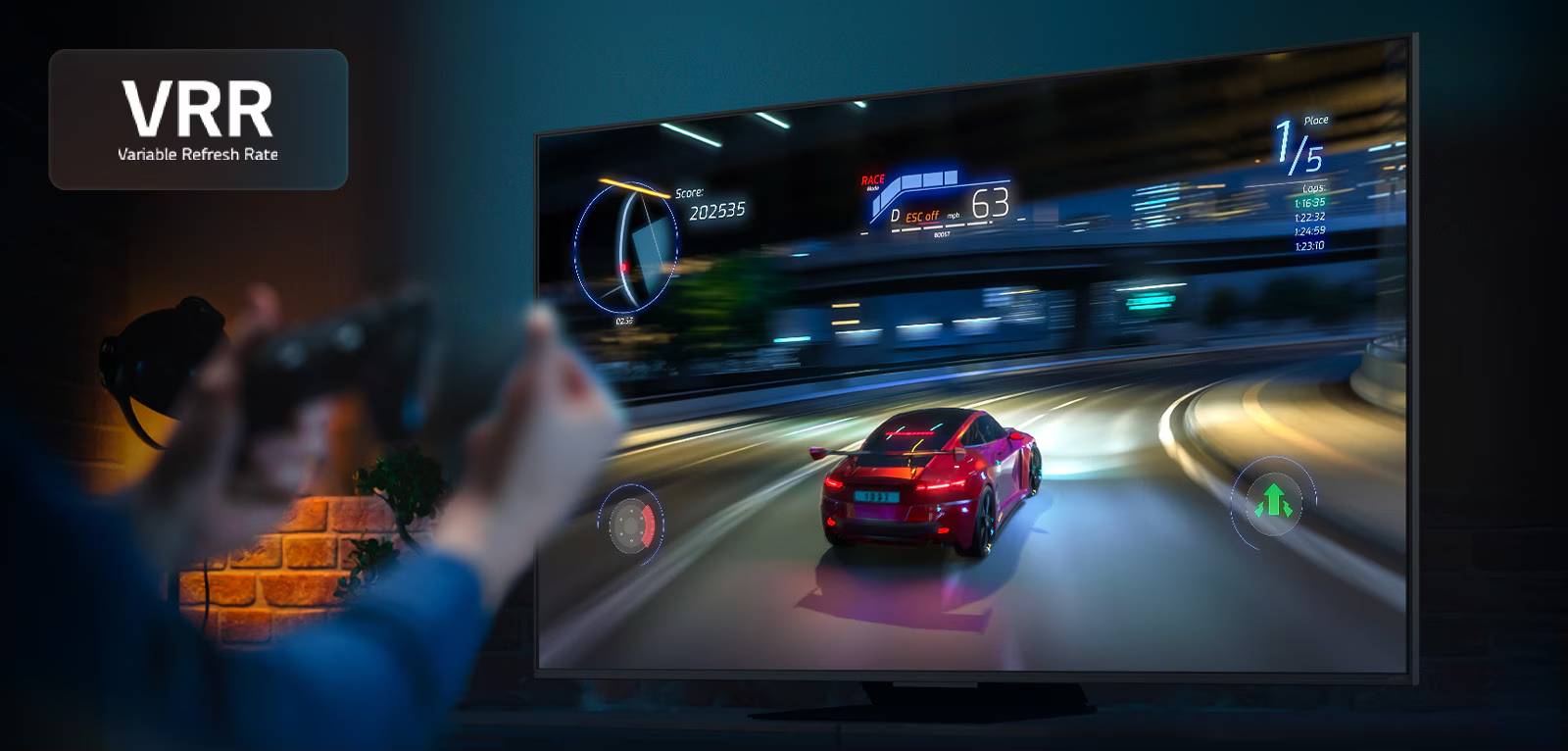 VRR* – Variable Refresh rate עומד בקצב השינויים בקצב הפריימים כדי להפחית מקרים של קריעות בתמונה. תוכלו לשחק במשחקים עשירים בגרפיקה ללא דאגות לגבי עיכובים והפרעות.